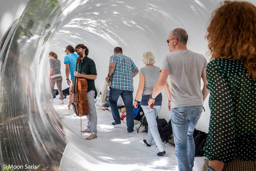 Erik Woltmeijer, one of the members of Waterlanders, a group that works with interdisciplinary arts in situ, putted together a group of improvisers to work on 2 locations for a musical walk.